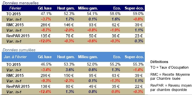 Performances hôtelières Février 2015