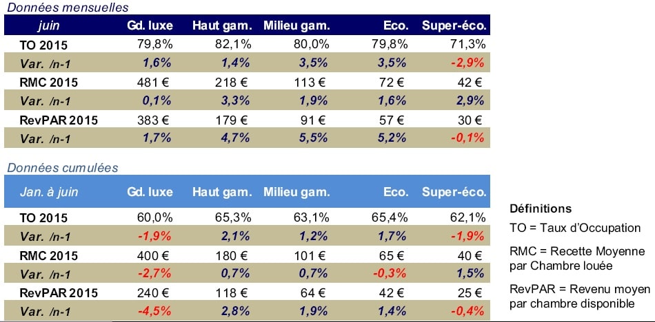 Performances hôtelières Juin 2015