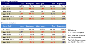 PERFORMANCES HÔTELIÈRES – AOÛT 2016